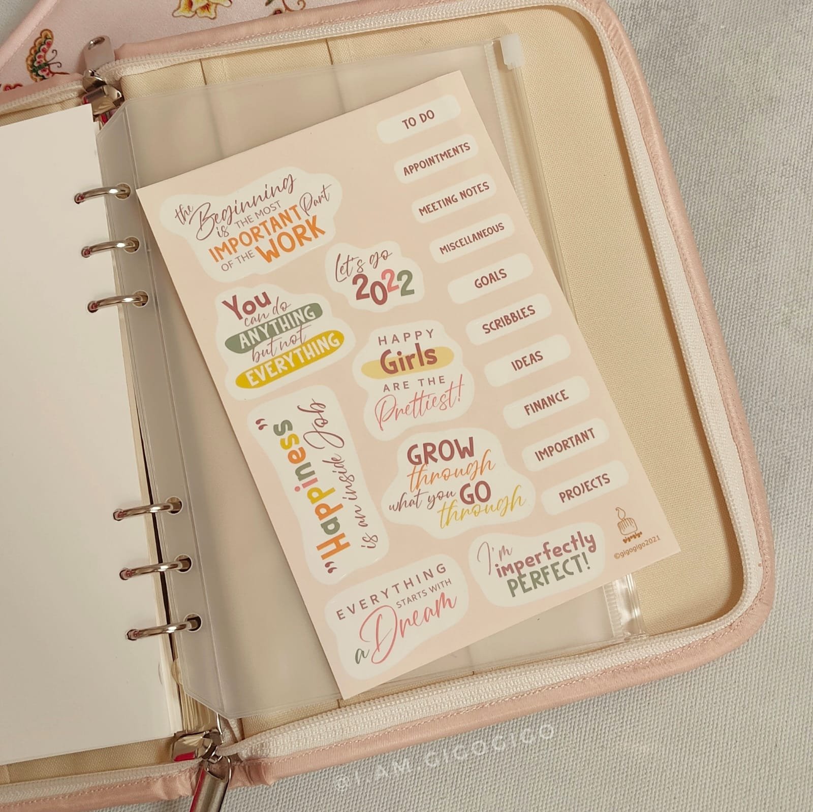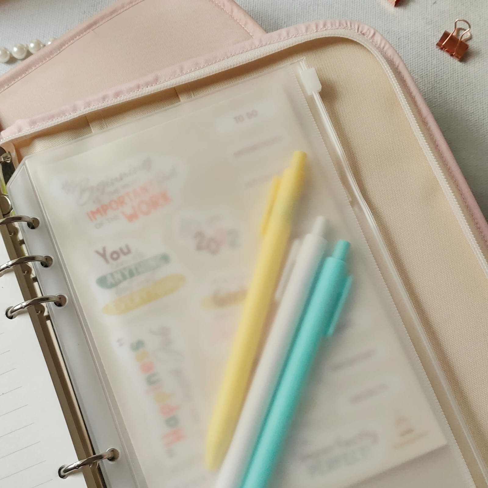 Set ini ideal untuk pengguna planner. Dengan 6 halaman premium, 1 stiker, dan 1 zip lock, Anda dapat mengatur planner dengan lebih rapi dan terorganisir. Cocok untuk pengguna planner yang menginginkan organisasi yang baik.